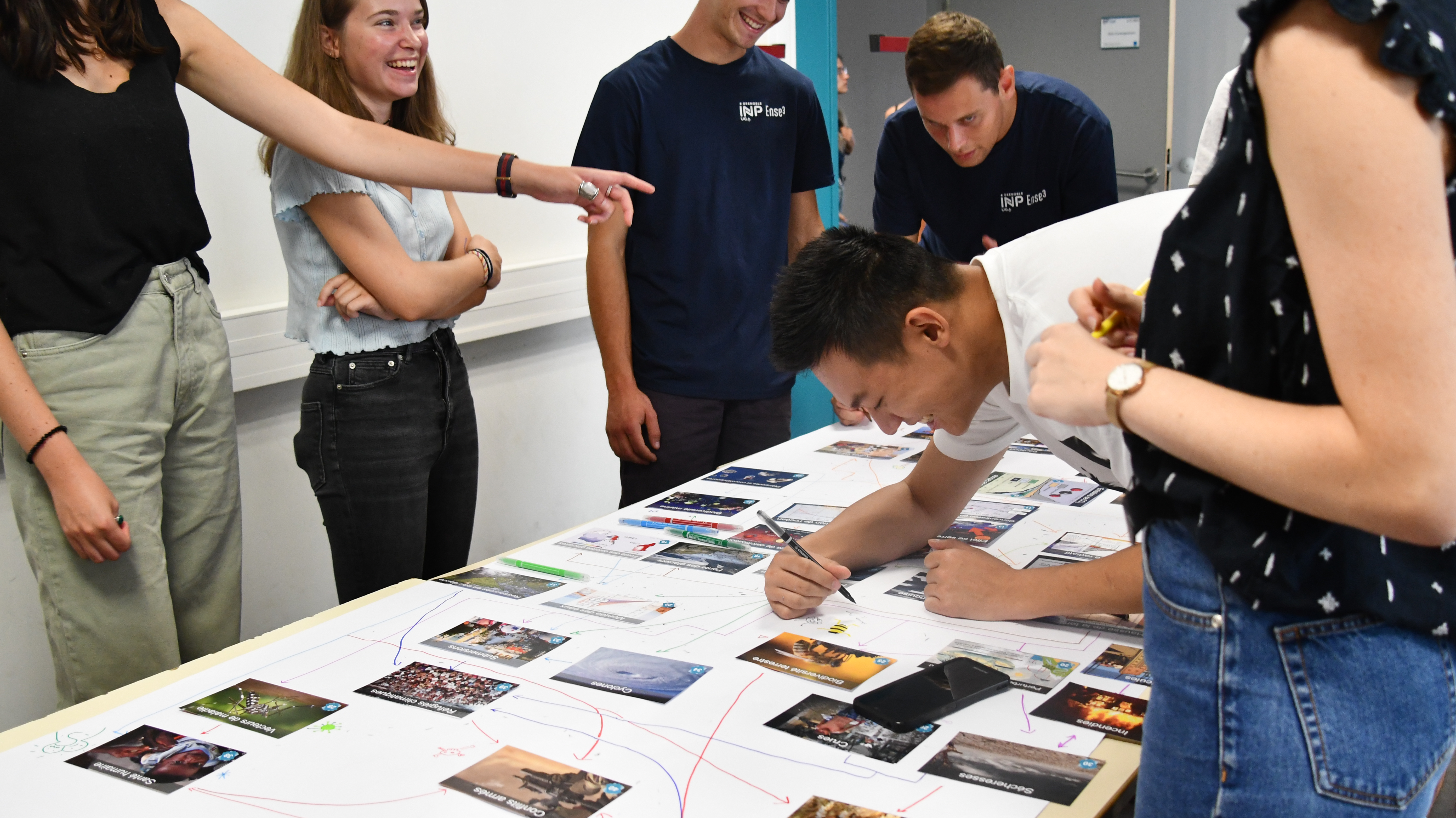 L'ensemble des élèves de première année a également pu participer à l'atelier la Fresque du Climat, animée par des étudiant·e·s, des membres du personel ou encore d'ancien·ne·s étudiant·e·s ! Un atelier riche en échange, en partage et en créativité qui permet de comprendre les causes et les conséquences du réchauffement climatique. Un atelier Inventons nos vies bas carbone à également été proposé à celles et ceux qui avaient déjà fait la Fresque. Ce deuxième atelier donne des ordres de grandeur et aide à mieux comprendre le chiffre de 2 tonnes de CO2 par habitant et par an préconisé par les accords de Paris.