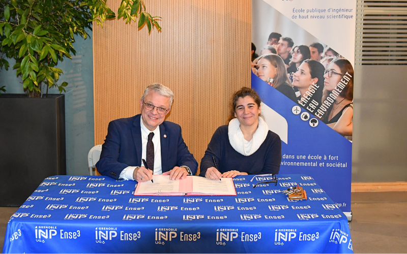 La signature s’est tenue en présence de Joël Gullon, Président de l’EP SCoT, et de Delphine Riu, directrice de Grenoble INP - Ense³, UGA. Étaient également présents pour l’EP SCoT : Cécile Benech, chargée de mission, et Benoît Parent, directeur.